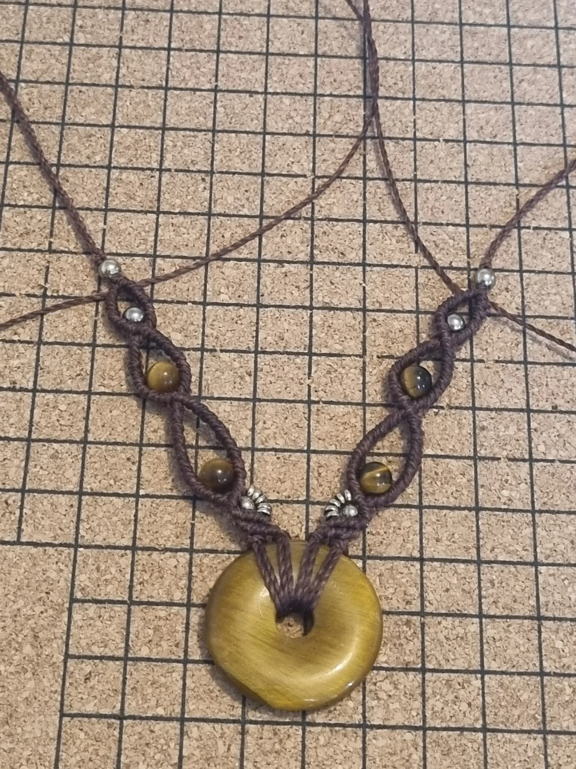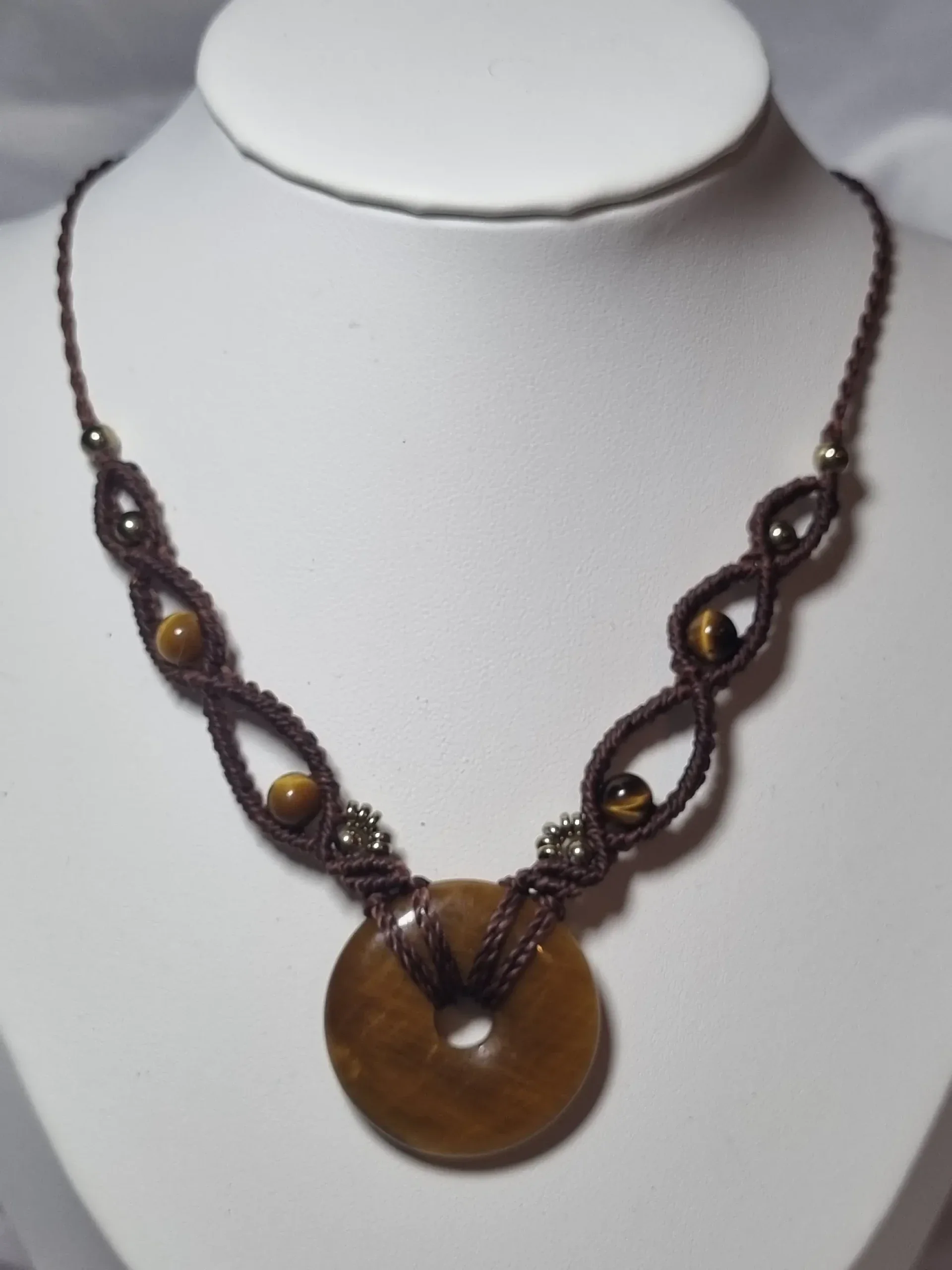 ✨ Collier Équilibre : Donuts & Œil de Tigre (Macramé)