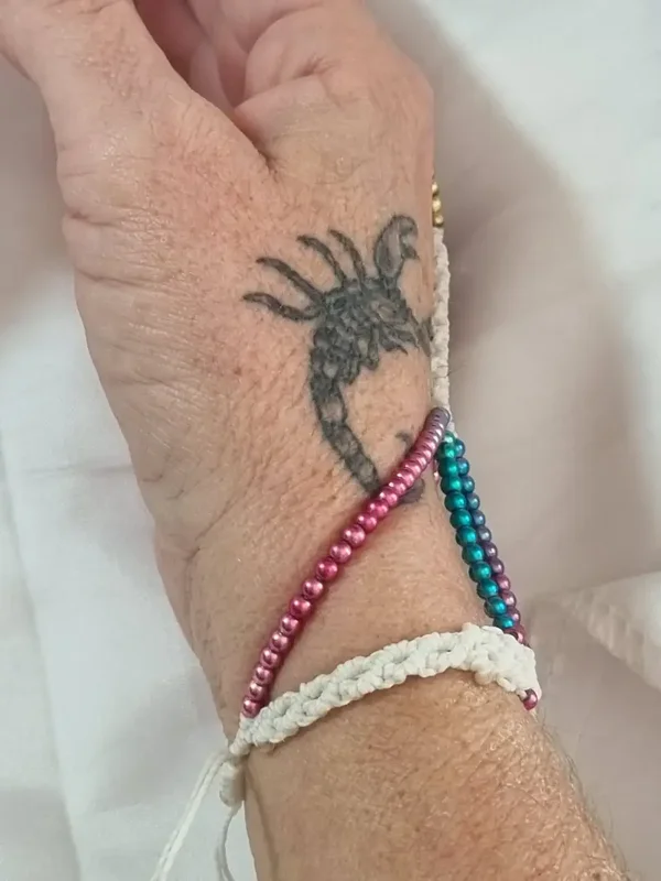 🤍 Version blanc en fil Linhasita 1mm, illuminée par des perles Hématite arc-en-ciel 3mm aux reflets solaires et vibrants.