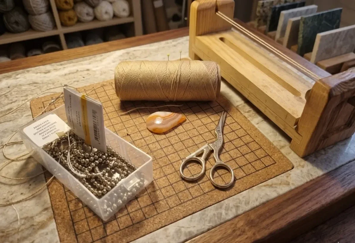 - Fil : Fil Linhasita beige sable 1mm (haute qualité, résistant et doux sur la peau).