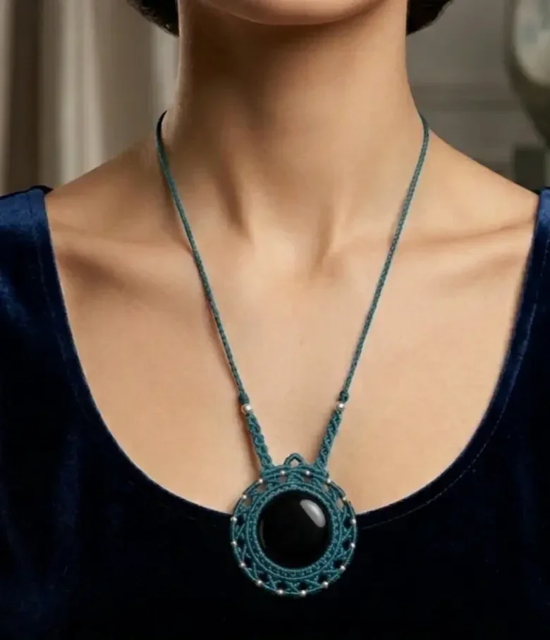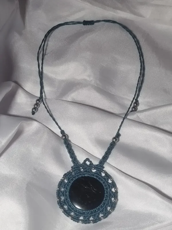Le mot de l'artisan : Ce collier est une pièce "signature". Sa couleur noire intégrale rehaussée d'argent en fait un accessoire intemporel qui s'adapte à tous les styles, tout en offrant une présence rassurante et protectrice autour du cou.